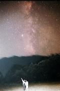 2つめは天の川ができるだけ高く昇ってくる時間を選ぶことです。天の川が見やすくなる高度30度ほどに昇ってくるのは,6月初めで午後11時半以降,7月初めで午後10時以降,8月初めで午後8時半以降です。(9月以降3月頃までは東から天頂にかけて天の川を見ることができる)旧暦の七夕である8月9日頃の方が,夜更かしをしないで天の川を見ることができます。 最後に,当然ですが,夜空の暗い場所を選ぶことです。特に,東から南の方向に街明かりが少ない場所がよいです。なぜなら,さそり座・いて座は,南の比較的低いところを通る星座で,七夕の星々は,天の川とともに東から昇ってくるからです。 これら3つの条件が満たされていれば,透明度の良い晴天の夜,市街地周辺部でもかすかに白くたなびく天の川の姿を見ることができるでしょう。 ![]() しかし,できれば山沿いのキャンプ場など,周囲に街明かりのない,真っ暗な場所で星空を見上げることをすすめます。星座の形がわからないほどの満天の星空で,本物の川のように揺らめく天の川の姿は,いつまでも記憶に残るものになるに違いないでしょう。 星空写真集のページへ |