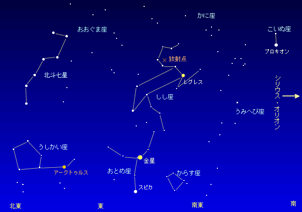 にあります。しし座は,この時期,午前0時頃