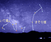 | 撮影データ (上)水田とさそり座 2000年5月6日 00:58〜01:05 24mm F4.0 ASA800ネガフィルム 新潟県中蒲原郡村松町安出にて撮影 |