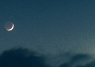 日没後25分たった頃から7倍の双眼鏡で月と水星が同じ視野で見えはじめ,しばらくすると,きらりと光り輝く水星を肉眼で見ることができました。
