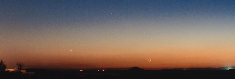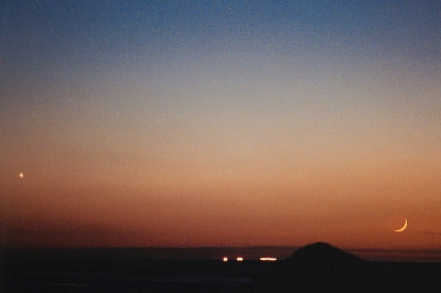 日本海に沈む月(月齢3)と金星 [2000年10月30日] |