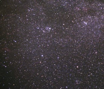 右上 (二重星団) 1997年8月16日2:25〜32 300mmF4.5 フジASA800ネガフィルム |