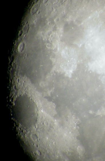 丸かった月も右側から徐々に欠けてきて,三日月のころに見えていた月の地形が再び詳しく見られるようになります。(左下の丸い海は「危難の海」)