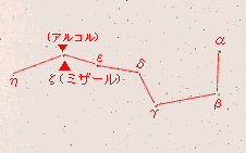 | おおぐま座の胴体からしっぽにあたる北斗七星は,比較的明るい星々からできていることや,日本からほぼ,一年中見られることもあって,全天を通じて最も目立つ星の並びの一つです。 北斗の「斗」は中国語で水をくむひしゃくのことです。秋から冬にかけて地平線す れすれに日本海に浮かぶ姿は,まさしく海の水をくみ上げるおおきなひしゃくのように見えます。北斗七星は,他の星々を指し示す道しるべとなります。最近,奈良県明日香村の「キトラ古墳」で見つかった壁画(星宿)にも,しっかりと描かれていま した。 まず,ひしゃくのますの部分の2つの星(β,α)を結んだ線を5倍に伸ばしたところに北極星が見つかります。 さらに,ひしゃくの柄の部分(ε,ζ,η)を伸ばす線は「春の大曲線」と呼ばれ,うしかい座のアークトゥルス,おとめ座のスピカといった春を代表する1等星へと続いていきます。中国では,この柄の部分の3つの星が日周運動によって示す方向を「斗建」と呼び,季節,時刻を示すものとして北極星と並んで重視 していました。 北斗七星はひしゃくの他にも,天にほうりあげられた熊の姿(ギリシャ,北アメリカ)や車(中国,バビロニア,エジプト,イギリス,北欧など),七人のおしょう,ぶた(中国),いびつな家(朝鮮)といった様々なものに見立てられており,多くの神話,伝説が残っています。 ひしゃくの柄の部分から2つ目の星「ミザール」には,くっつくように見える4等星の星「アルコル」があります。 参考文献:藤井 旭著「星座ガイドブック 春夏編」(誠文堂新光社) 野尻 抱影著「星の神話伝説集成」(恒星社厚生閣) 大崎 正次著「中国の星座の歴史」(雄山閣出版株式会社) 写真データ ![]() ★ 1997年5月28日 21:20〜25 50mm F2.8 (ASA800ネガフィルム) 新潟県神林村南大平キャンプ場にて撮影 |