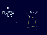 からす座 ![]() スピカの右下にある小さな台形の形をした星座です。ギリシャ神話によると,このカラスは,銀色の翼を持ち,人の言葉を話すことができたのですが,うそをついたため,翼は黒く,カーカーとしか鳴けなくなってしまったといわれています。 からす座の小さな台形は,昔から目につく形であったらしく,日本では「四つ星」「枕星」「袴(はかま)星」といった名前で呼ばれていました。イギリスでは,この星の並びを船の帆(ほ)にとらえ,おとめ座のスピカをさししめすことから「スパイカ(スピカ)ズ・スパンカー(帆)」と呼んでいました。また,日本でも「帆かけ星」と呼ぶ地方があります。 にているために,目立たないことを「闇夜のからす」などといいますが,星座の世界ではそれはあてはまらないようです。 参考文献: 野尻 抱影著「星の神話伝説集成」(恒星社厚生閣) 林 完次著「宇ノ名前」(光琳出版社) 写真データ 1999.3.24 AM00:00〜00:05 50mm F2.8 コダックASA400ネガフィルム 撮影地 中蒲原群村松町 大蔵 |