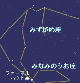 「みずがめ座」の星座絵には,みずがめとそれをもつ少年の姿が描かれています。ギリシャ神話によれば,この少年は,トロイの羊飼いの美少年ガニュメデスの姿であると伝えられています。大神ゼウスにみそめられたガニュメデスは,わしに変身したゼウス(後にわし座のモデルとなった)によって天界へ連れ去られ,酒宴のお酌をさせられることになりました。ですから,みずがめにはお酒が入っているというわけです。 「みずがめ座」は,ペガススの四辺形とフォーマルハウトの間にある大きな星座です。しかし,明るい星が少なく,形をたどるのが難しい星座です。見つける方法として,ペガスス座の頭のすぐ南にある暗い星の並びが少年の肩からみずがめの部分にあたるので,それを見つければ,フォーマルハウトまでの星の並びをたどることができるでしょう。 「みずがめ座」は太陽の通り道(黄道)にある星座の一つです。その周囲には「うお座」や下半身が魚の「やぎ座」など,水に関係のある星座が多くあります。昔の中近東では,この星座のあたりに太陽があるときに雨季を迎えたことと関連があるといわれています。 参考文献:藤井 旭著 「星座ガイドブック 秋春編」 誠文堂新光社 |