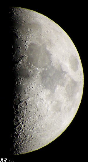 | 上弦の月 夕方南の空高くみえる月を見つけたら,それは上のような形をしているはずです。 上弦(じょうげん)とは,このころの月を弓の形に見立てて,西に傾いて沈むとき,弓の弦(つる)にあたる欠けぎわを上にして沈むところからつけられた名前です。(南半球ではこの逆になります)このとき,地球から見て月は太陽からちょうど90°はなれた位置にあります。 上弦の月のころは,欠けぎわのクレーターが一番美しく見え,月の南側(右の写真下側)を望遠鏡で見ると,大小さまざまなクレーターが密集して壮観な眺めとなります。 月の北側(写真上側)にも, アペニン山脈,アルプス山脈など複雑な地形が見られ,こちらも望遠鏡の絶好の対象となります。 月のクレーターの多くは,隕石の衝突によってできたものと考えられています。一方,海の部分は巨大なクレーターが生じたときに月の内部からマグマが流れ出て,クレーターを埋め立てた場所と考えられています。アペニン山脈やアルプス山脈と呼ばれるところも,大きなクレーターの縁にあたる部分です。 上弦の月の拡大画像(南側)へ 上弦の月の拡大画像(北側)へ 上弦の月のファインディングチャートへ(テキスト入り) 参考文献 : 白尾元理,佐藤昌三共著 「図説 月面ガイド」 立風書房 写真データ ★月齢7.6 2000年1月14日 17:16 新潟県立自然科学館 10㎝屈折望遠鏡 K-60 SONY Digital Mavica MVC-FD88にて撮影 |
